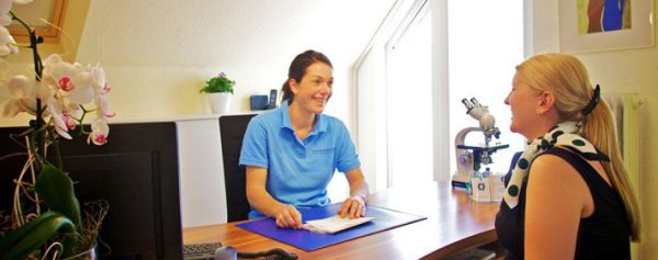 Im Sprechzimmer haben wir bewusst auf eine sterile Praxiseinrichtung verzichtet und stattdessen auf Wohnlichkeit gesetzt, da wir meinen, dass dies eine wichtige Grundlage für ein vertrauensvolles Arzt-Patienten-Gespräch darstellt.